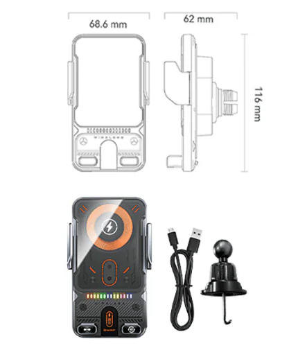 🚗 2-in-1 Car Mount + Wireless Charger